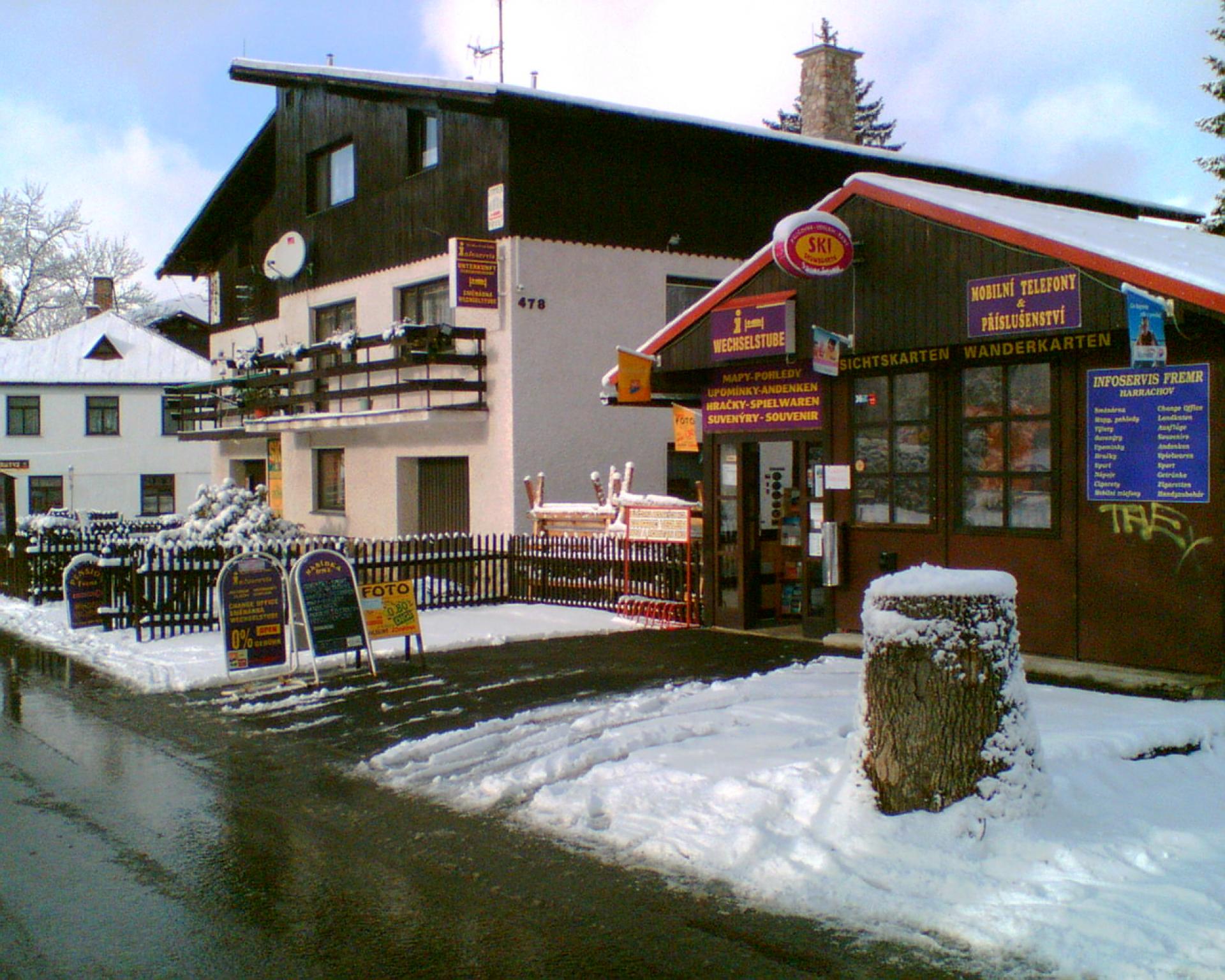 - Touristisches Büro INFOSERVIS FREMR HARRACHOV - zu Verfügung ist Wechselstube, Verkauf von Souvenieren, Wanderkarten und Ansichtskarten, Möglichkeit der Bestellung der Ausflügen in nahe und weitere Umgebung. Wifi free.